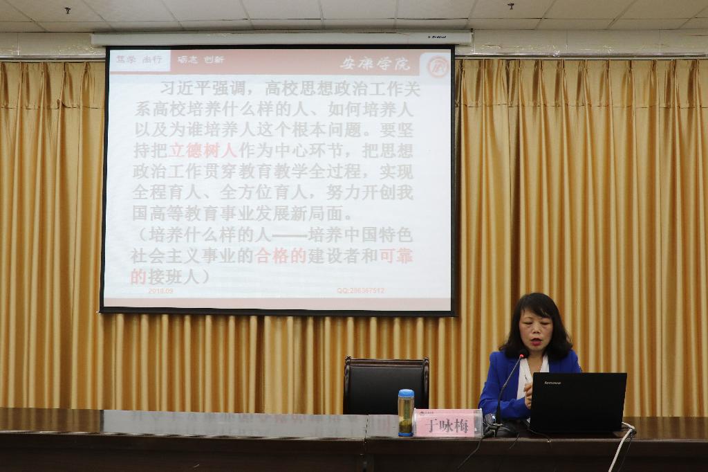 随后,她首先简要介绍了习近平总书记在全国高校思想政治工作会议上的讲话精神,会议精神要求高校应该围绕“立德树人”中心任务,贯彻落实“三全育人”,努力培养社会主义事业的合格建设者和可靠接班人;其次简要介绍了中国共产党第十九次全国代表大会的召开及会议主题和相关内容精神,重点对党章的修订进行了讲解。本次专题讲座重点围绕如何培养“中国特色社会主义可靠的接班人”从两个部分讲解。第一部分围绕“习近平勉励青年如何选择人生道路”的重要讲话要点切入,从调心态、树理想、能吃苦、勤学习、走好路五个方面进行了解读。她强调刚进入大学的同学们要迅速适应老员工活,一要努力调整各种心态,过好开学第一关;二要坚定理想信念,做到“爱国、爱家乡、爱父母”,理想指引人生方向,信念决定事业成败;三要肯吃苦,以青年时期的习近平总书记为榜样,读读《习近平的七年知青岁月》、《梁家河》这两本书,学、思、悟相结合,不怕经历摔打、挫折、考验,走好未来一生的路;四要学会勤于学习,善于学习,找到好的学习方法,学习是立身做人的永恒主题;五要学会走好路,紧跟时代浪潮,志存高远、勇于开拓,放飞人生梦想,在拼搏的青春中创造无愧于时代的人生。第二部分围绕“当代老员工如何锻造成为可靠的接班人”这一内容,从中国共产党从哪里来、谈谈信仰和说说党章三个方面进行阐述,重点引导员工学习了党的性质、党的指导思想等基本理论知识,对全体员工进行了入党启蒙教育,引导与会同学通过对党的基本理论知识的学习和了解,激发加入党组织的政治热情,从而不断端正入党动机,坚定共产主义理想信念。最后,于咏梅对加入党组织的具体流程以及如何撰写入党申请书进行了简单讲解,鼓励同学们积极递交入党申请书,争取早日成为一名入党积极分子。