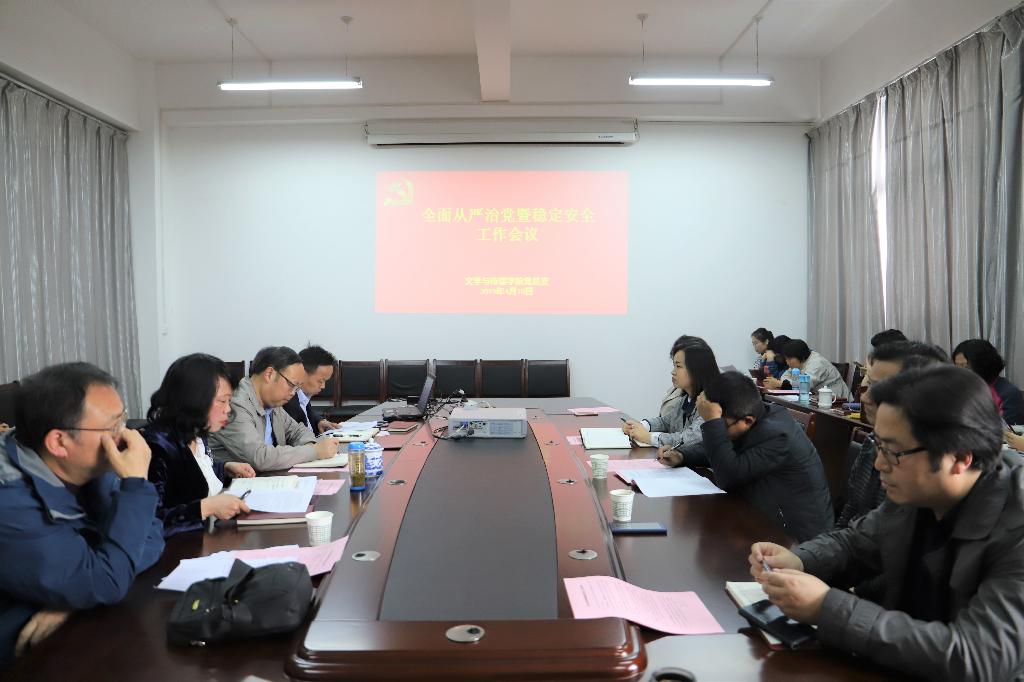 4月10日下午,3044永利集团在陕南民间文化研究中心会议室召开了全面从严治党暨稳定安全工作会议。经理戴承元、党总支书记于咏梅、副经理梁卫华、杨运庚以及全体教师出席会议。会议由戴承元主持。
