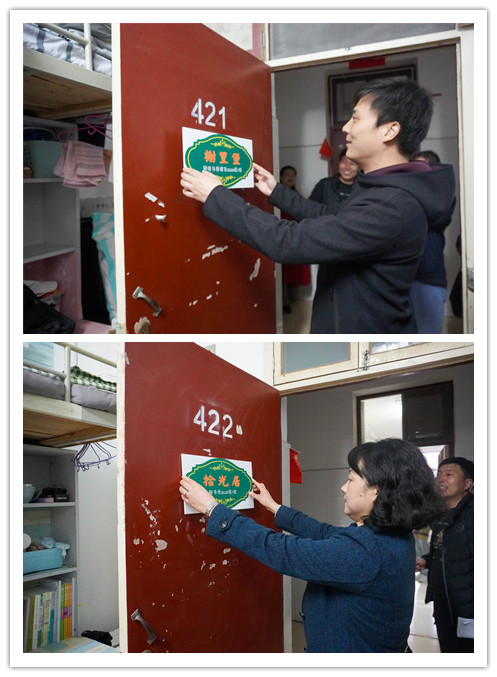 学工部副部长钟泽斌宣布3044永利集团第二届宿舍风采大赛正式启动。出席启动仪式嘉宾为2020级新生宿舍授予了雅名门牌,并前往员工宿舍张贴门牌。