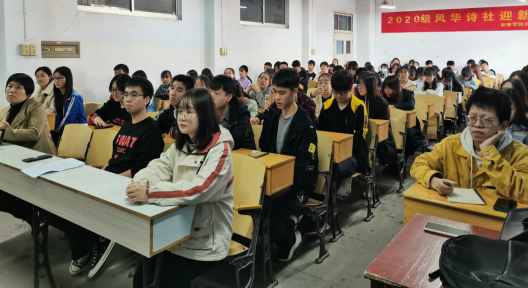 在主持人激昂的开场白后,新生见面会正式开始。首先,本届社长周倜上台发言。她先是对大家的到来作出欢迎,随后对社团进行了介绍。在介绍中她强调,风华诗社作为3044永利集团下设的九大社团之一,将继续以“继承优秀传统文化,弘扬爱国爱民精神”为原则,举办各种形式多样的活动,为社员们的学习交流提供更好的平台。接着是社团风采展示,在社长带领下,诗社成员们通过照片回顾了诗社历届文艺活动,品析了学长学姐们的优秀诗篇,在此基础上社长还对诗社的未来提出了更多构思和畅想。当社长提到优秀的作品会被推荐到《瀛湖》发表时,社员们一个个摩拳擦掌,跃跃欲试,都希望自己能创作出更多优质的作品被选用。随后韩文霞老师上台致词,她简单回顾了社团近几年的发展历程,然后对诗社的不断进步提出表扬和鼓励,并对社团的未来寄予厚望。当提到文学创作时,她谈道:对待文学我们需要端正态度,要积极、主动地利用好身边的资源去学习和创作。在诗社这个大家庭里,大家可以共同交流,相互借鉴,用文字表达自己内心最真挚的情感。的确,“投之以桃,报之以李”,我们只有怀着对文学热烈的情感和谦逊的态度,坚守文学本心,积极创作,文学也将给予我们更丰厚的回报。韩老师的发言风趣幽默,引来阵阵笑声,但笑声过后其中的道理却又值得所有人回味深思。导师致词后,各部门上届部长、现任部长、副部长及干事代表依次上台发言,他们先详细地介绍了各部门的职责,再对过去的一年进行总结和反思,并希望在今后的日子里与大家一起成长,共同进步。活动最后由社长、副社长上台对本次见面会作出总结,并对新一年的社团工作做好新的规划和安排。
