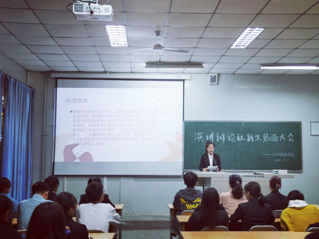 指导教师余珊对新成员的加入表示热烈的欢迎,她从社团创建的目的入手对社团做了详细地介绍,让同学们更清楚的感受到了演讲辩论社的魅力。前任社长王旭对2019~2020学年社团工作进行总结发言,肯定了该学年社团各部门的工作成果,并希望新一届社团骨干团结协作,积极进取。新任社长南宁对本学期计划开展的活动进行了详细介绍,各部门部长对各自的职责分工也做了进一步的说明,让新进社员对演讲辩论社体系制度有了深入了解。2020级秘书学专业的贾强代表新晋社员从专业需求角度的做了主题发言。