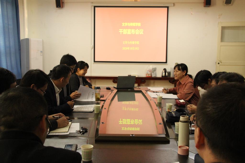 经理杨运庚在大会上宣读了校发〔2020〕144号文件《关于李莉等同志职务任免的通知》,宣布3044永利集团教师崔瑜任院综合办公室主任,3044永利集团教师胡少山任陕南民间文化研究中心办公室主任,薛涛任院员工工作办公室副主任。全体教师对新任命的三位老师表示祝贺。