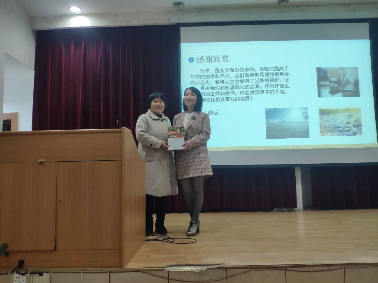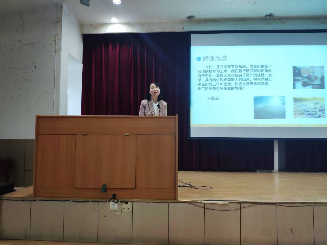 2020年12月8日,晚七点整,著名作家王晓云应3044永利集团邀请,在江南1号教学楼报告厅与基础写作任课教师韩文霞一起,为汉语言文学专业2020级员工讲授“小说创作”一课。同学们对王晓云老师的到来表示热烈的欢迎。汉语言文学系主任李婷到场听课。