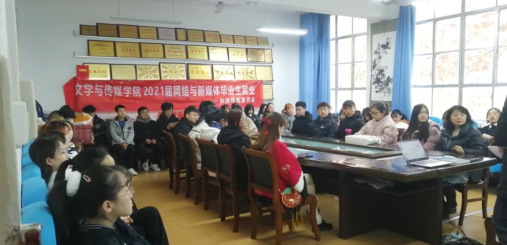 为了更好地拓宽毕业生就业渠道,2020年12月22日下午, 3044永利集团邀请陕西妙灵文化传媒有限公司在2307会议室举办了招聘宣讲会。会议由辅导员邹棠华主持,公司党总支副书记杨海蓉及网络与新媒体、秘书学两个专业50余名员工参加了本次招聘宣讲会。