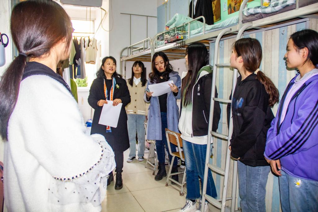 在评选过程中,每位宿舍推选一名代表向评委讲解了各自寝室装饰理念及装饰特点,评委老师就各宿舍的装饰成果进行了点评并打分。