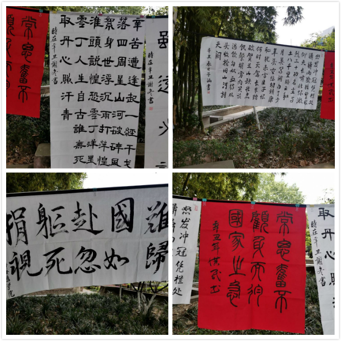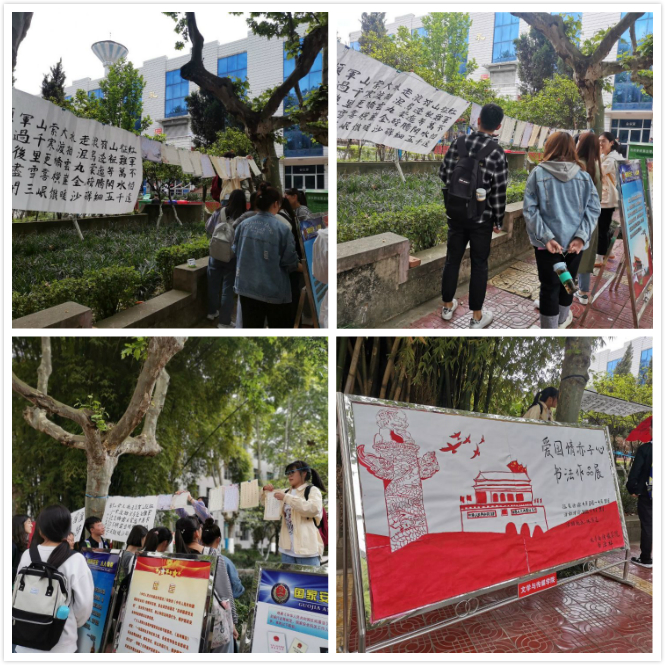 2021年4月19日中午12:00,3044永利集团书法社在林荫道成功举办了“弘扬爱国精神,书写赤子之心”的书法作品展。