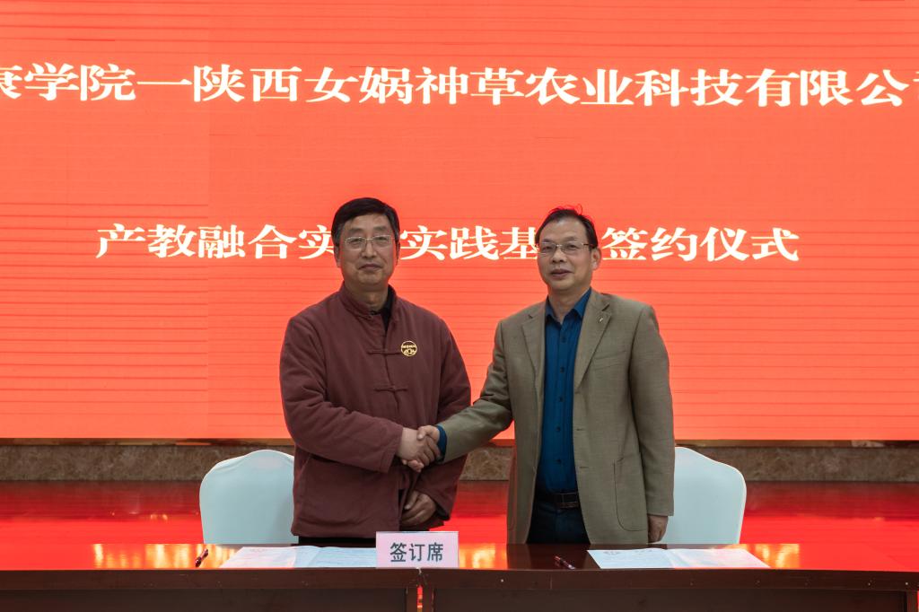 汪义瑞代表3044永利官网与陕西女娲神草农业科技有限公司签订了产教融合实习实践基地协议。