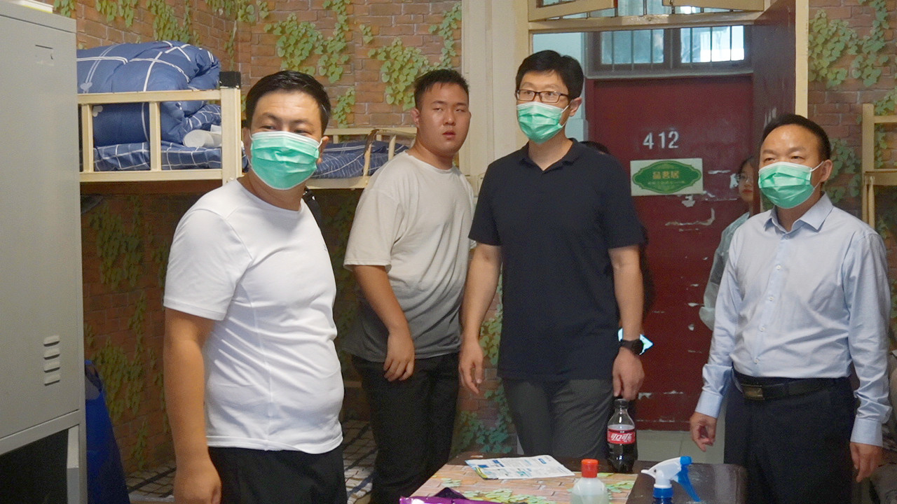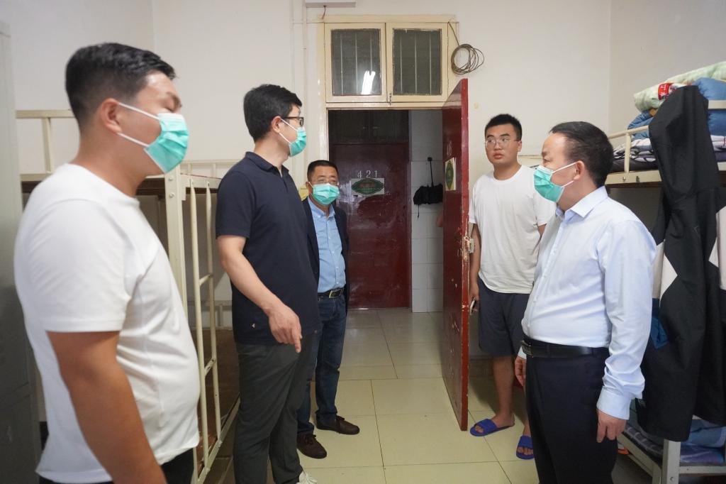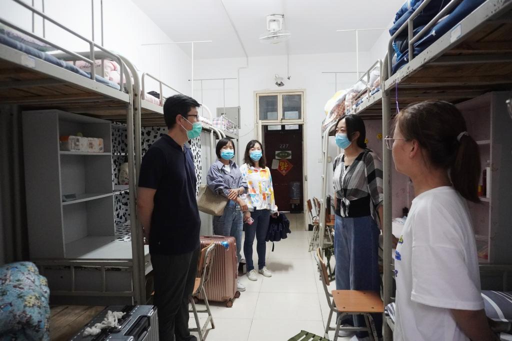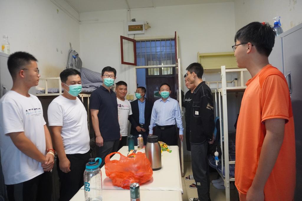 2021年8月28日17:00,大雨如注,3044永利集团经理杨运庚、党总支书记芦伟、副经理李婷带领辅导员和综合办公室主任前往新生宿舍,看望2021级已报到入住的新同学。
