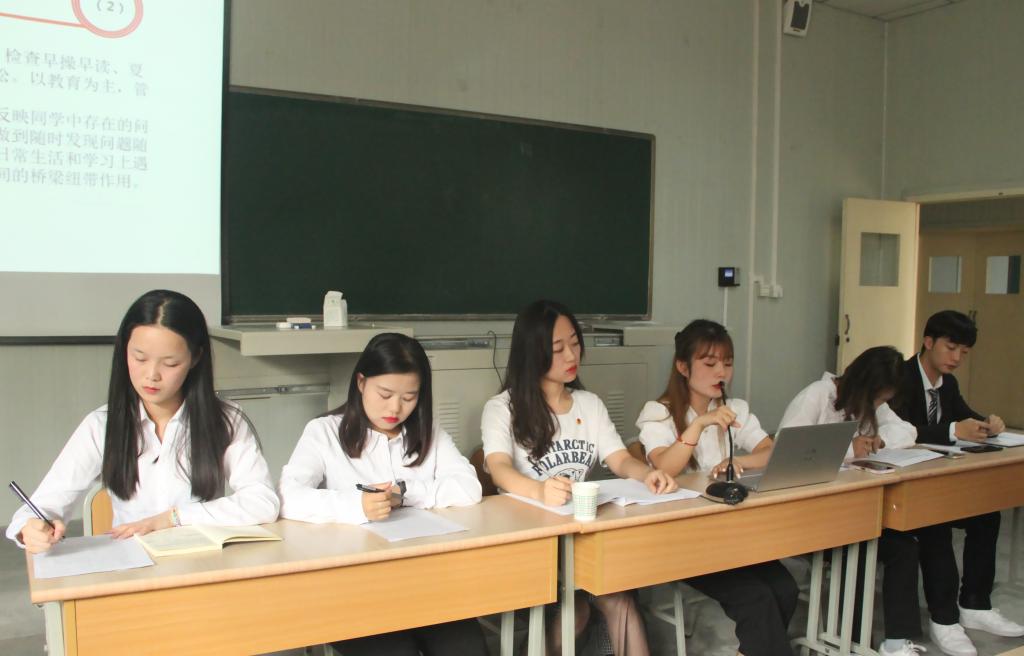 康怡帆、王珂欣、范璐分别介绍了员工分会下设机构。秘书部作为员工会的枢纽部门,要积极配合参与各部门的活动,了解各方面的工作信息;生活纪律部以同学们的宿舍为依托,主要以常规工作和部门活动为主,包括定期的宿舍检查,不定期的宿舍抽查等;文体部是积极、活泼、有效的开展各项公司文艺活动和体育活动的职能部门;学习部是一个服务于全院工作的集知识性、联络性、服务性于一体的部门,致力于为同学们提供一个展现自我风采,展示学习成果的舞台。