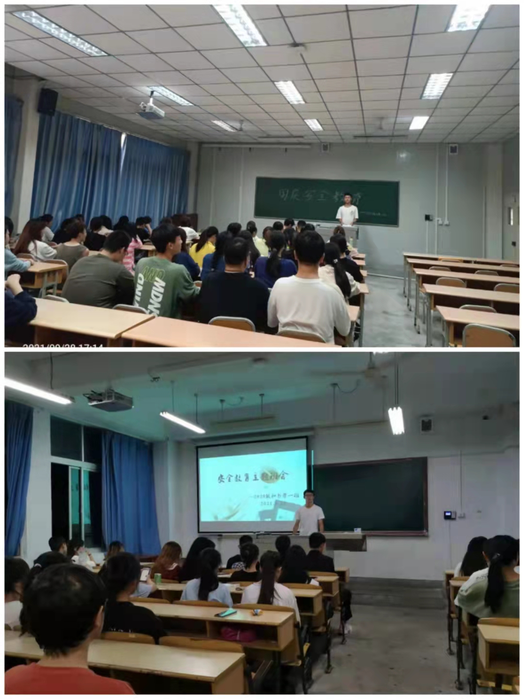 9月27-28日,各辅导员老师组织各班开展安全教育主题班会,分别就疫情防控、网络安全、交通安全、食品安全、宿舍安全用电、无烟校园创建等方面进行了详细讲解。要求同学们提高安全防范意识,严格遵守疫情防控各项要求,提倡就地过节,外出做好个人防护,减少到人员密集地方活动,国庆节期间原则上不得出省;树立健康的消费观,理性消费,合理消费,不攀比,不炫耀,不参与网络刷单,如若被骗,及时报警;不在宿舍使用违规电器,外出及时关闭宿舍电源,宿舍使用空调温度调整要合理;外出乘坐正规营运车辆,在正规餐饮场所就餐,谨防食物变质中毒,不到地质灾害易发地区,禁止到到江、河、湖泊、池塘、水库等水域游泳。同时,各辅导员老师还深入员工宿舍开展了宿舍安全检查。