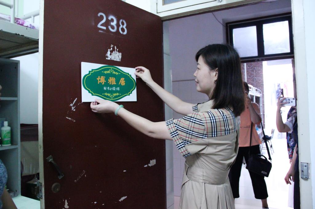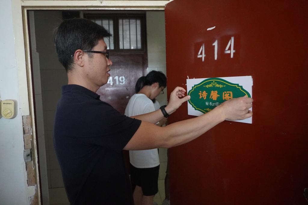 芦伟宣布3044永利集团第三届宿舍风采大赛正式启动。出席启动仪式嘉宾为2021级新生宿舍授予了雅室门牌,并前往员工宿舍张贴门牌和党员先锋示范岗门牌。