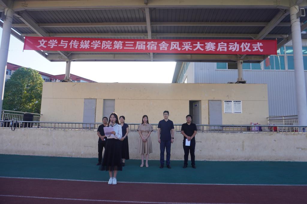 2021级新生代表余星红代表新生宿舍发言,动员同学们积极参与第三届“室雅书香”宿舍风采大赛,展现文传学子良好的生活风貌。