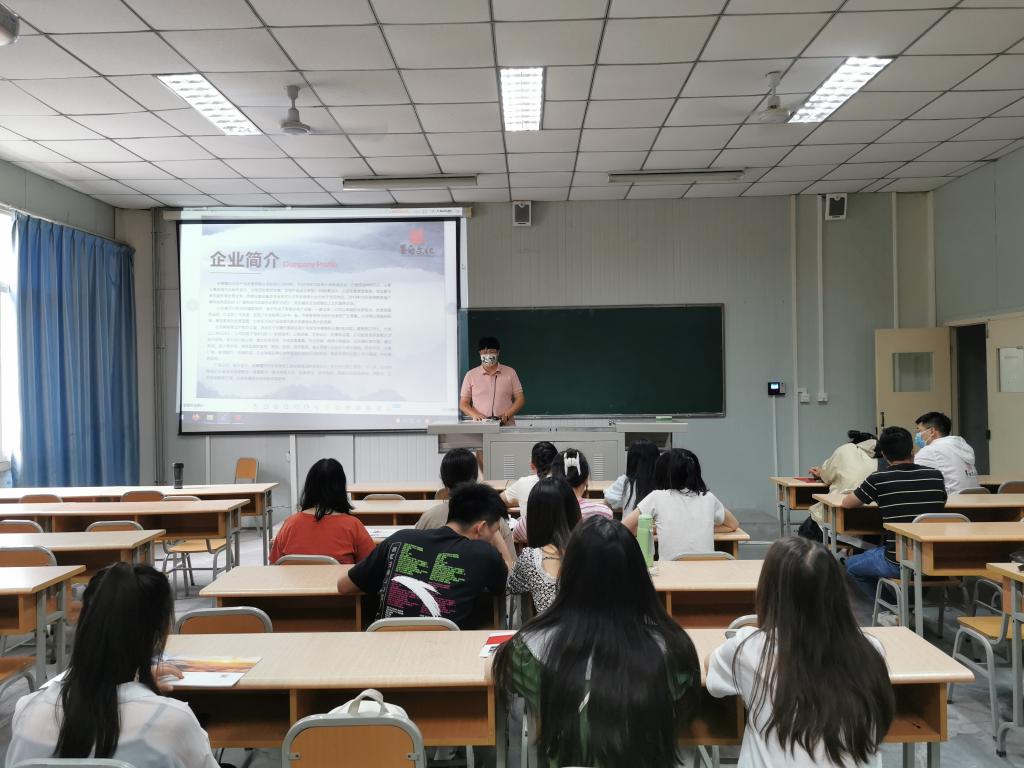 会议伊始,彭潇引导同学们了解当前就业形势之严峻,叮嘱同学们珍惜机会、主动出击。在亲切友好氛围中,安康墨白文化产业发展有限公司、陕西南枫装饰设计工程有限公司负责人就企业文化、招聘需求、个人未来发展等相关信息进行了详细介绍,就同学们感兴趣的问题进行了现场答疑。