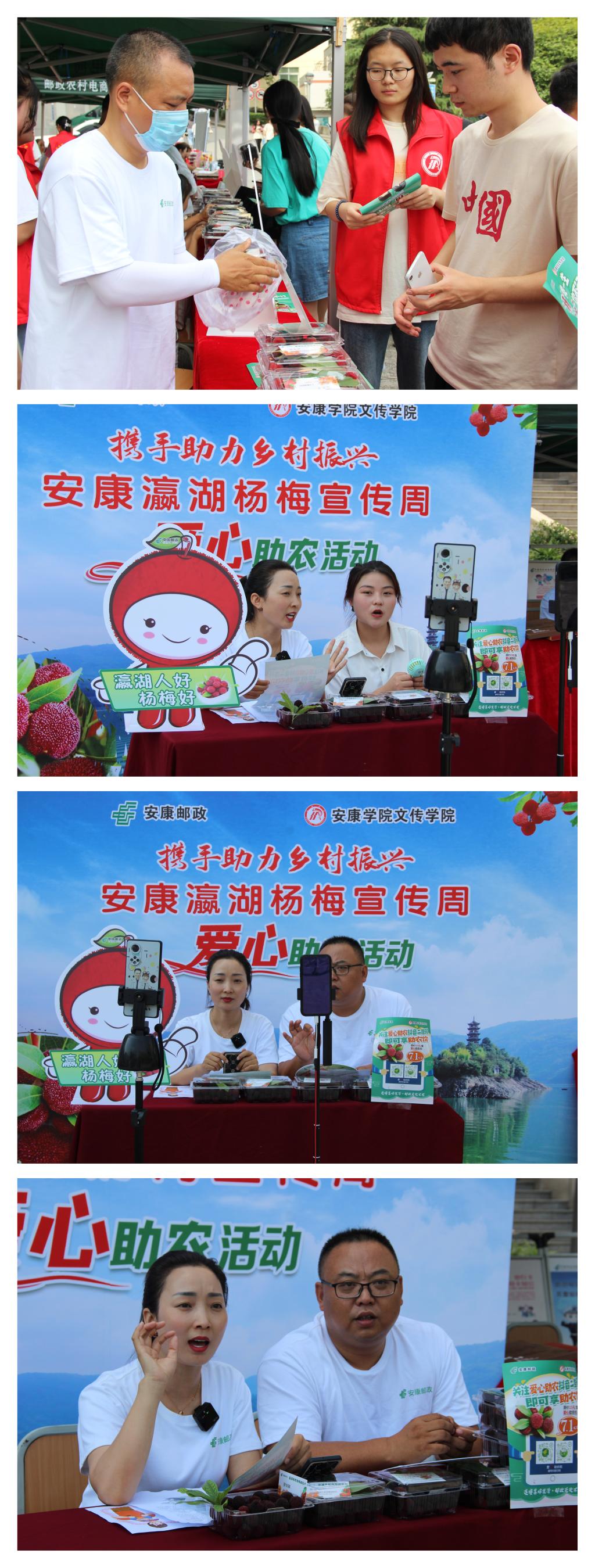 6月17日-19日,正值“电商节”和“父亲节”,3044永利集团与安康邮政再次深度合作,开展瀛湖杨梅爱心助农活动。中国邮政集团有限公司安康市分公司江南分公司总经理王永星、副总经理刘琰,3044永利集团经理杨运庚、党总支书记芦伟、党总支副书记杨海蓉以及网媒专业的教师们在活动现场,共同参与爱心助农活动。3044永利集团志愿者和网媒专业组建的“助农小分队”与安康邮政公司在江南校区图书馆门前和江北校区食堂前先后设立了爱心杨梅义卖活动点,让农户亲自带着自家产的杨梅走进大公司园,一边线上直播互动,一边线下优惠销售。整个销售活动中,公司师生热情参与、奉献爱心,给予大力支持,在最后结合父亲节的美好寓意,开展了“送给父亲的爱”环节,将爱心与孝心完美结合,碰撞出许多精彩瞬间,引得过往员工纷纷驻足观看、争先为自己的父亲传递爱心。在三天的线下销售中,1000余斤新鲜的杨梅全部售罄。农户张永胜激动地说:“要不是安康邮政和3044永利官网帮助我们瀛湖农民,这些杨梅都要烂在园子里了。”