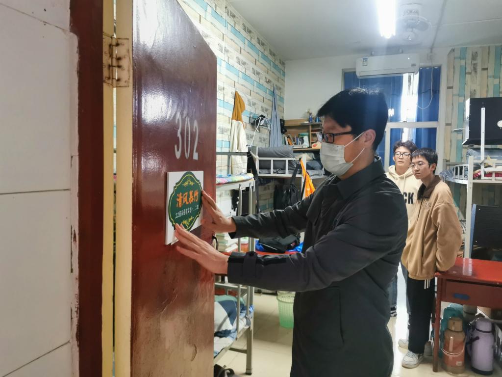 党总支书记芦伟宣布本次寝室文化风采大赛正式启动。号召全员宿舍以获奖宿舍为榜样,加强宿舍文明建设。芦书记为获奖宿舍颁奖,为新生宿舍代表授雅室门牌。